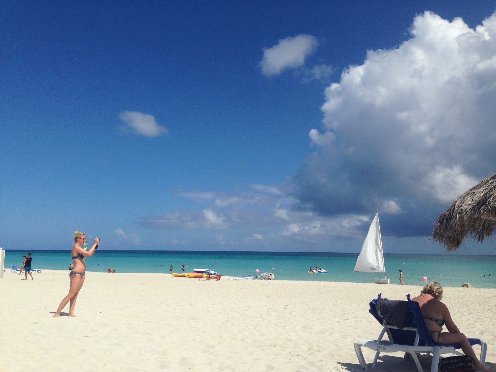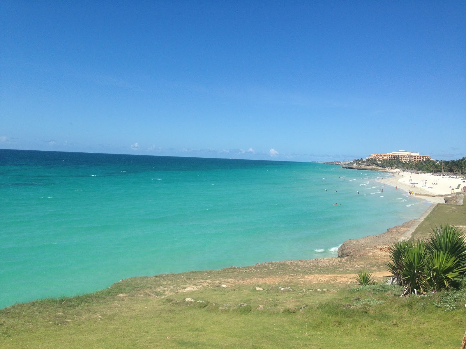 Varadero é lindo, um mar maravilhoso, tivemos a sorte de pegar todos esses dias o Mar calmo e céu azul, temperatura mais ou menos de uns  30º, porém como ventava um pouco, o calor era totalmente suportável.