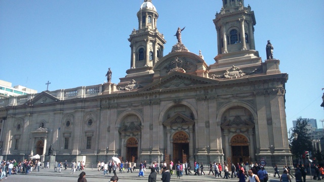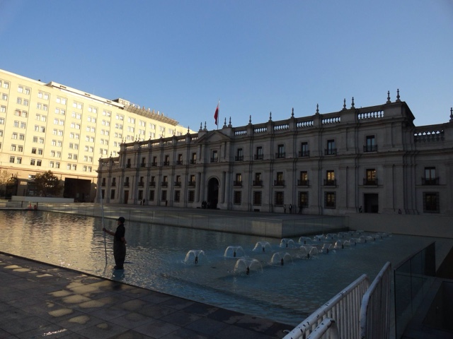No centro está o palácio de la Moneda, palácio do governo chileno, bonito esteticamente. Interessante acompanhar a clássica troca de guarda se tiver sorte de pegar uma. Os arredores estão cercados de bancos e casas de câmbio, bem mais baratas para trocar reais por pesos do que no aeroporto ou em shoppings.