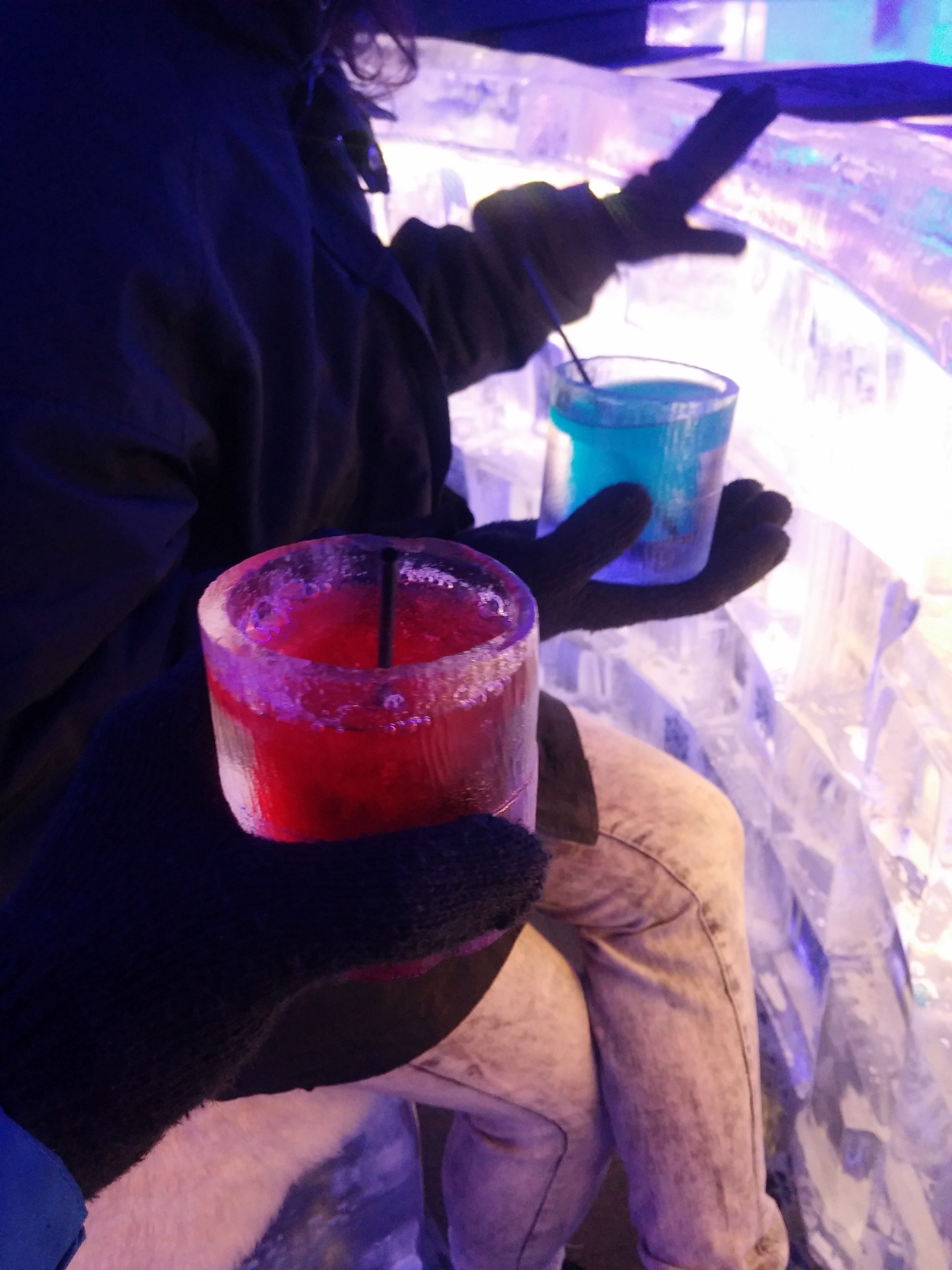 Me senti um verdadeiro esquimó durante quase 1 hora, estávamos passeando pela International Drive quando vimos esse bar e paramos para dar uma olhada, estava com uma promoção de entrada a 10 dólares no bar gelado e mais alguns drinks de graça, precisamos voltar para o hotel e colocar um par de calças para visitar a atração, chegando lá eles emprestam casacos apropriados e luvas. É frio de verdade -10 celcius e o incrível foi que apareceram alguns malucos de shorts lá dentro. Bebidas sem álcool simplesmente congelam se você ficar batendo muito papo e você vai precisar trocar seu canudo por uma colher rsrs.