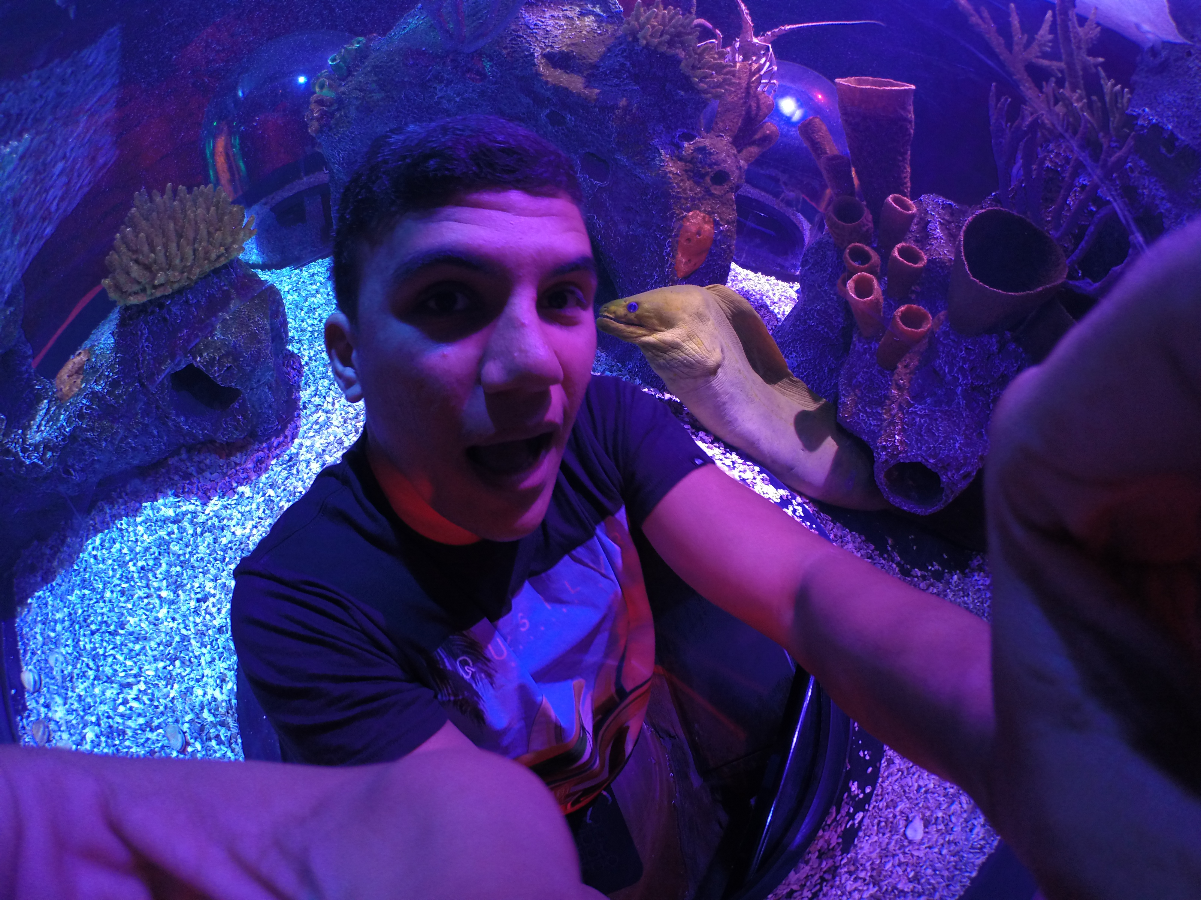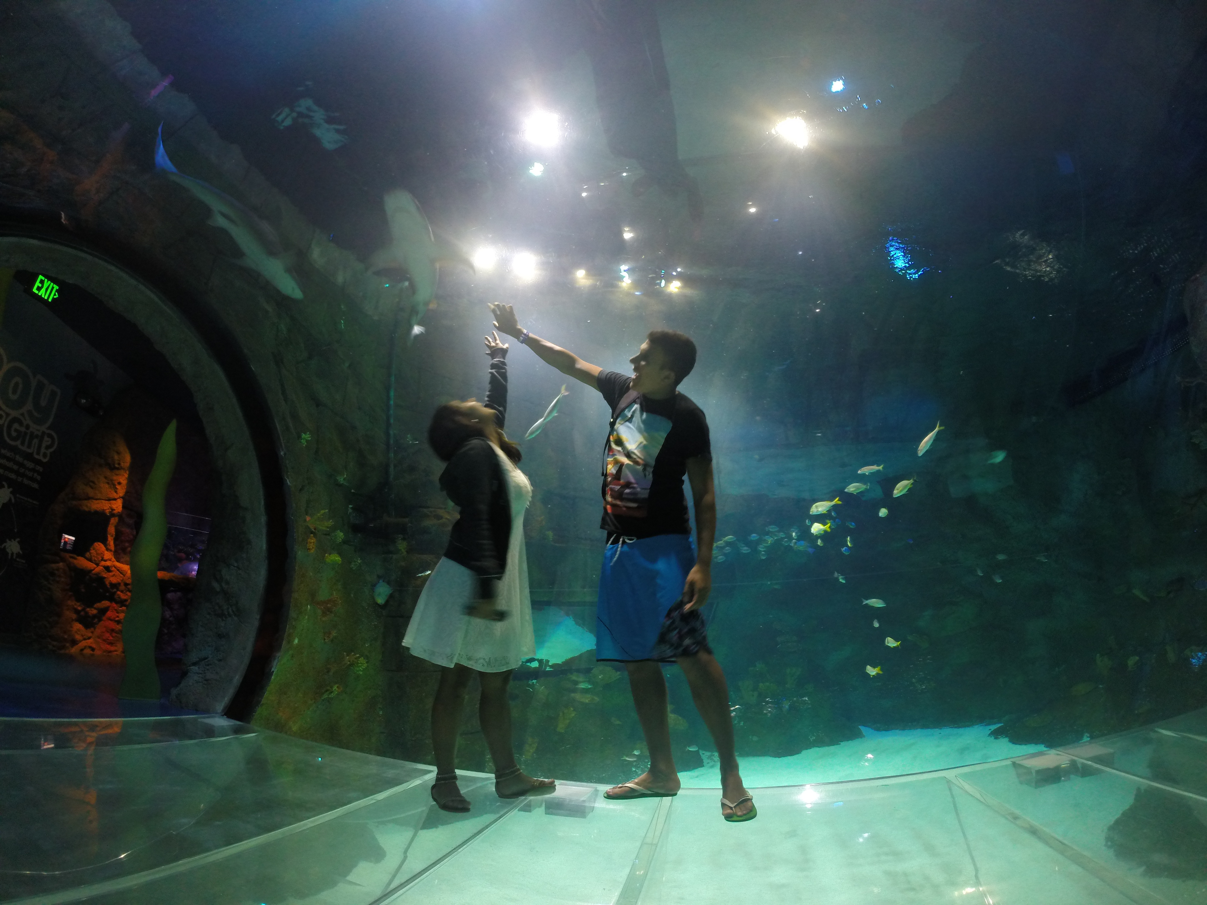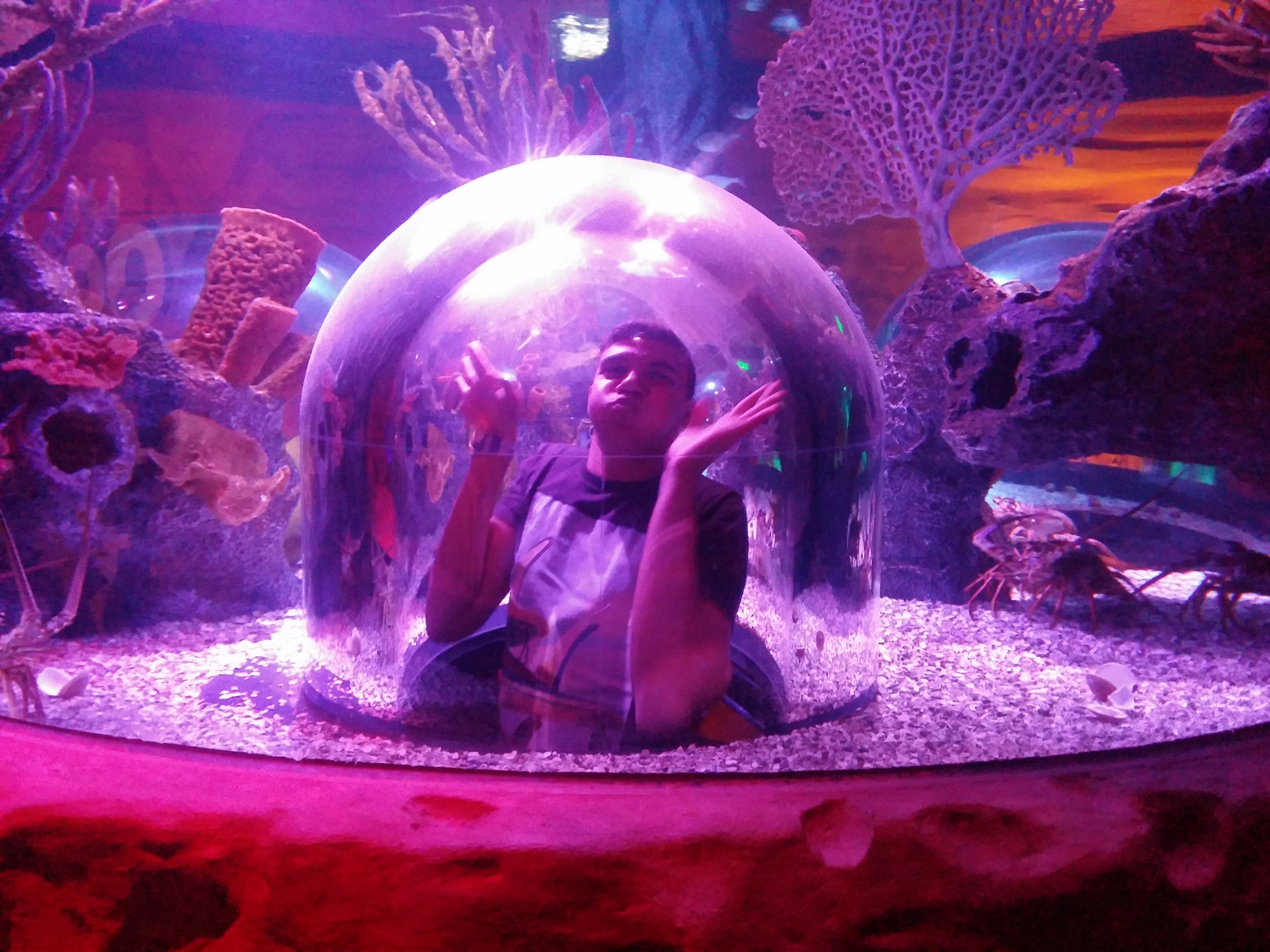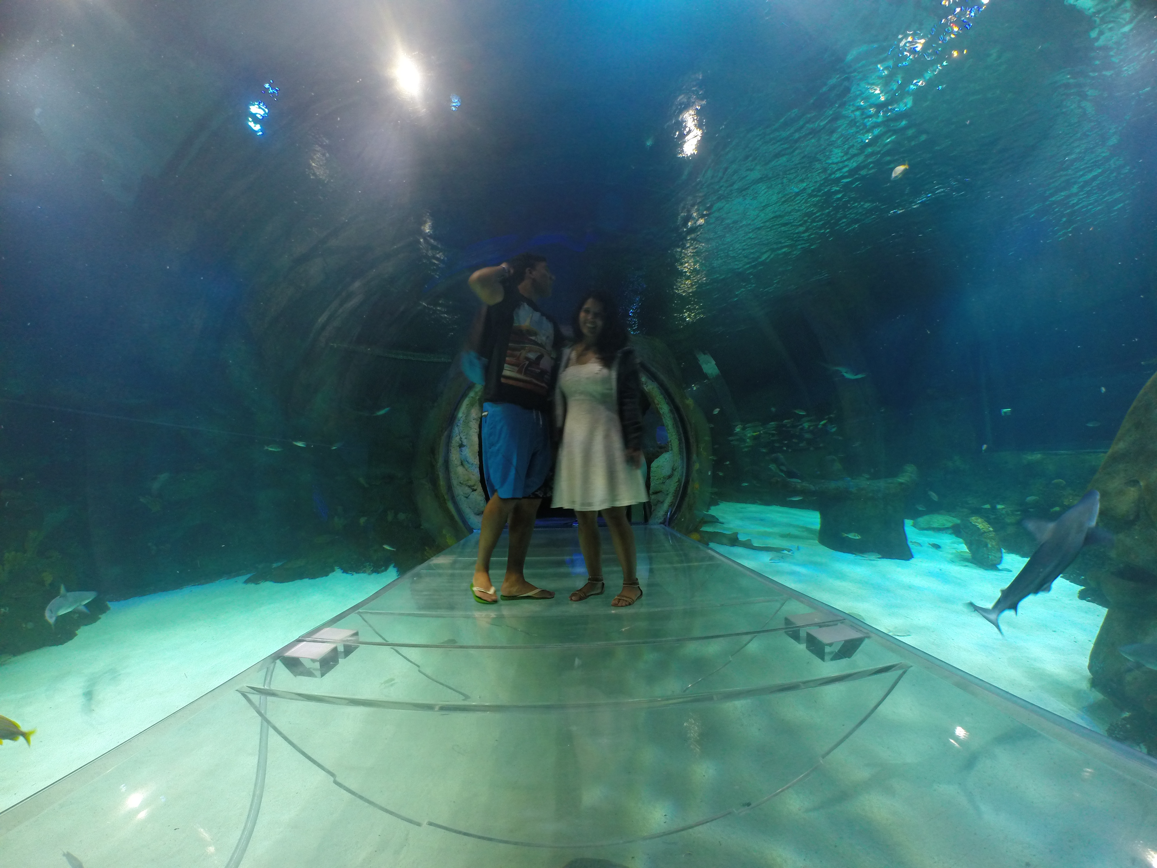 - Túnel de transparente que atravessa um dos tanques